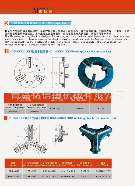 我公司大批量供应焊接卡盘,价格从优,欢迎咨询订购,我公司卡盘具有精度高、整体结构精巧的特点。操作方便灵活,不变形、不会出现卡死现象。其中KD系列卡盘安装方便,具有快速夹紧的功能。KDA-600复合卡盘具备夹持范围广、承载能力强、调整灵活的性能。KD-600卡盘通孔直径大,适用于大孔径管子的夹持,具备夹紧力大、承载能力强的特点。大批量供应焊接卡盘,价格从优,精度高,夹持范围大
