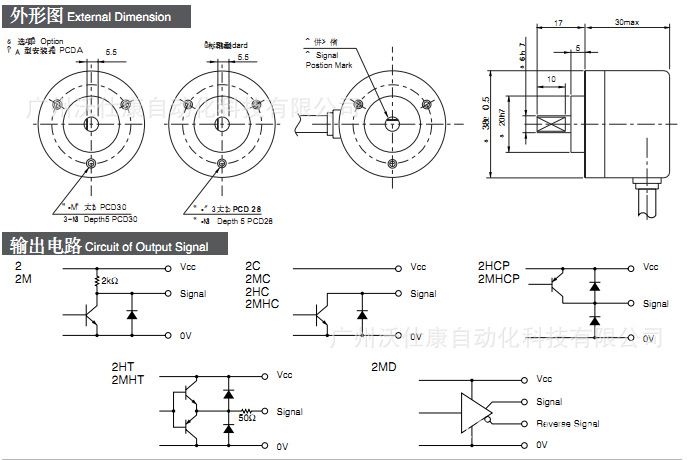 内密控OVW2-20-2MHC编码器安装尺寸及输出电路图